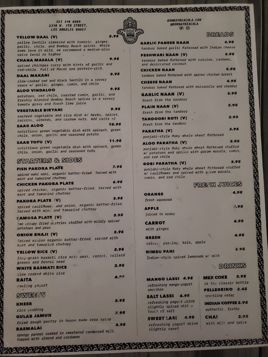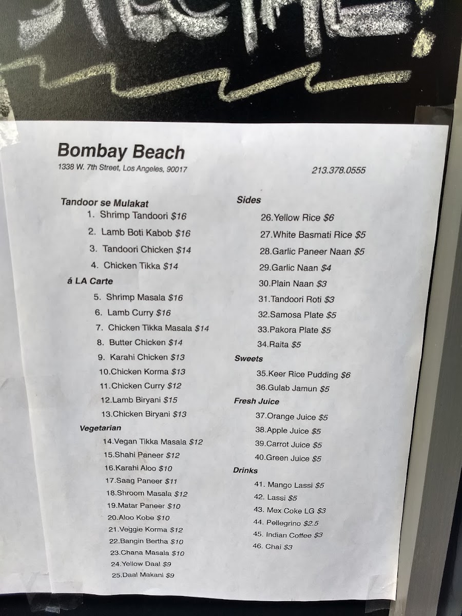 Welcome to Bombay Beach, a culinary gem nestled in Los Angeles, where vibrant flavors transport you to the heart of India. Located at 1338 W 7th St, this establishment prides itself on delivering a truly authentic dining experience that has captivated locals and visitors alike.